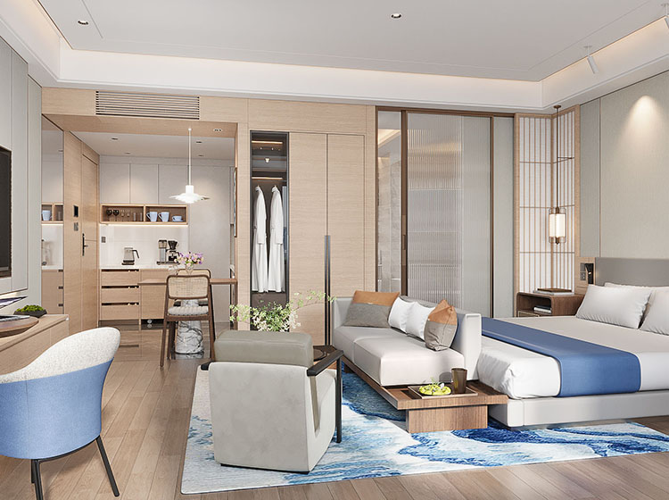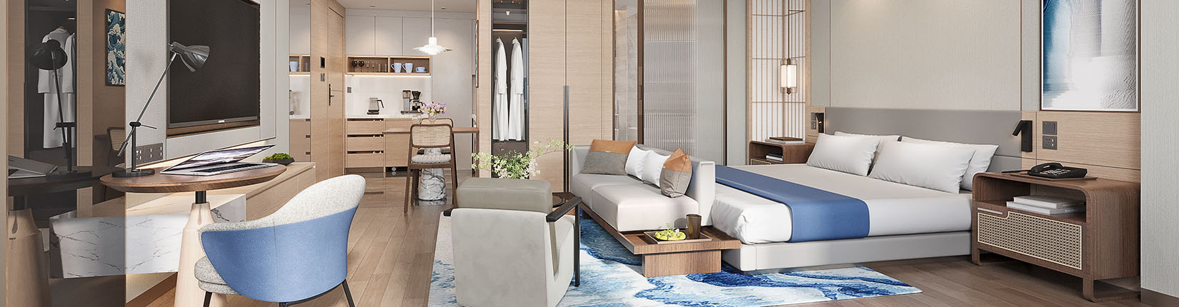Designed for today’s travellers, Modena by Fraser Dalian offers 120 well‑appointed residences suitable for both short‑ and long‑term stays. Each apartment features a fully equipped kitchen and high‑speed Wi‑Fi, complemented by streamlined services and modern facilities that support productivity without compromising comfort.