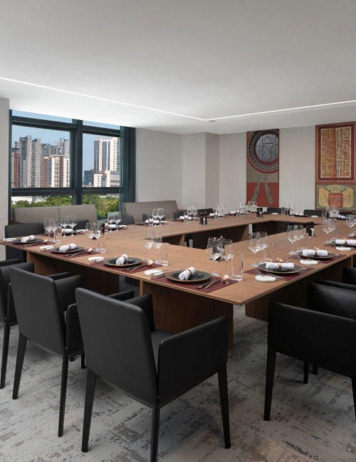 Located next to the boardroom, the private dining room offers a secluded dining area for up to 20 people. This facility may only be reserved by MD and above.