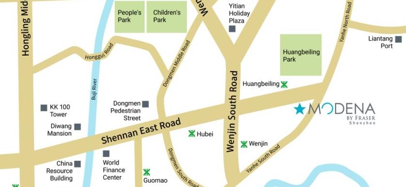 Strategically located, Modena by Fraser Shenzhen sits adjacent to Luohu Port, Wenjindu Port and Liantang Port, and across the river from the northern point of Hong Kong. Surrounding business towers, shopping centres, Dongmen Old Street and other popular shopping areas offer residents with great accessibility for the ultimate urban lifestyle.
