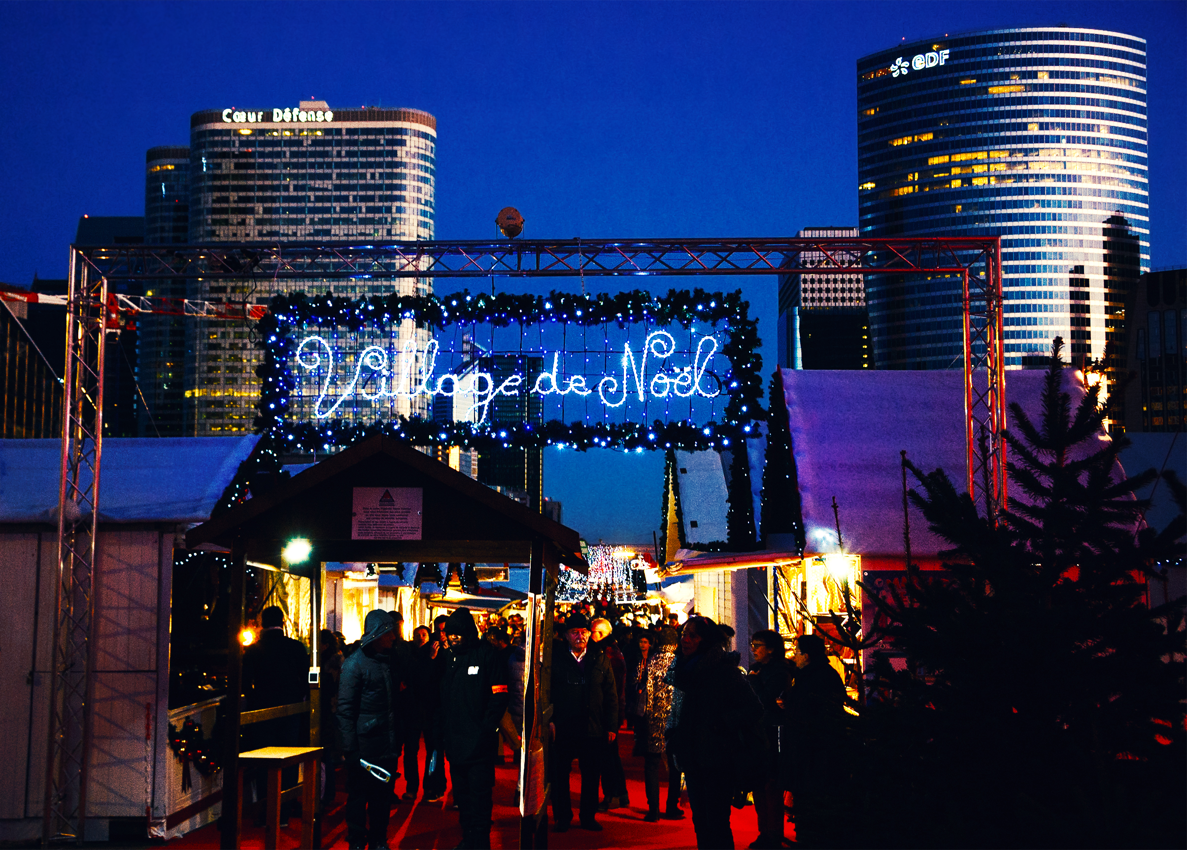 Just steps from Fraser Suites Harmonie, the La Défense Christmas market transforms the Parvis into a winter village. More than 350 wooden chalets offer handcrafted gifts, festive decorations, gourmet treats, and regional specialities from across France and beyond. The towering Grande Arche serves as a dramatic backdrop, its modern lines framed by strings of twinkling lights. Visitors browse for artisan jewellery, knitwear, and homeware while sampling traditional vin chaud, tartiflette, and crêpes from the food stalls. The market typically opens in late November and runs through early January, with late opening hours that make it particularly convenient for business travellers.