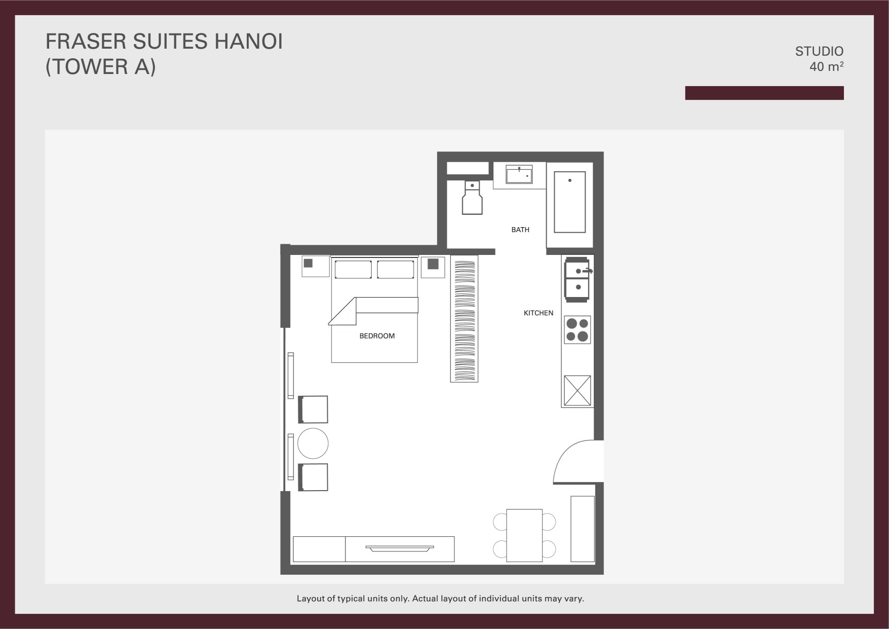 40 sqm with a maximum occupancy of 2 guests. For single travellers or couples, this studio apartment in Hanoi comes with a Queen-sized bed.